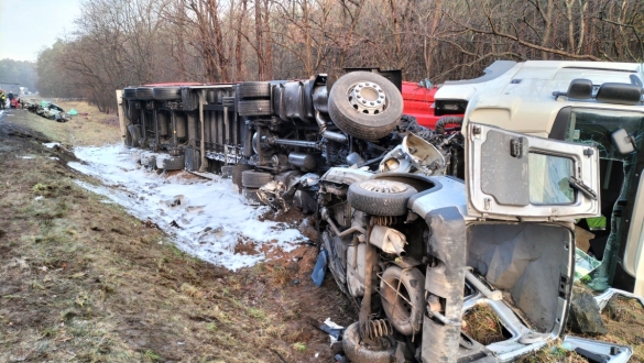 Groźny wypadek na DK22. Zderzyły się dwie ciężarówki
